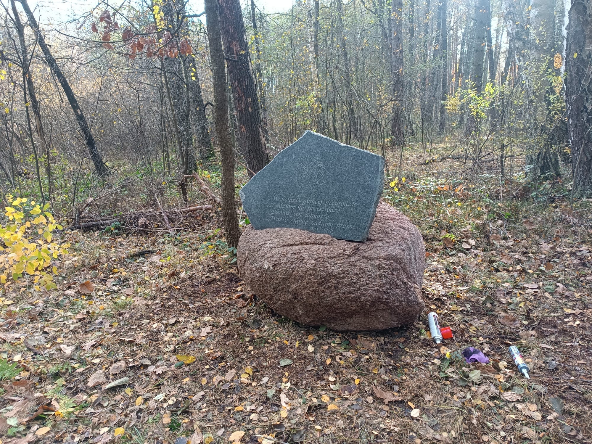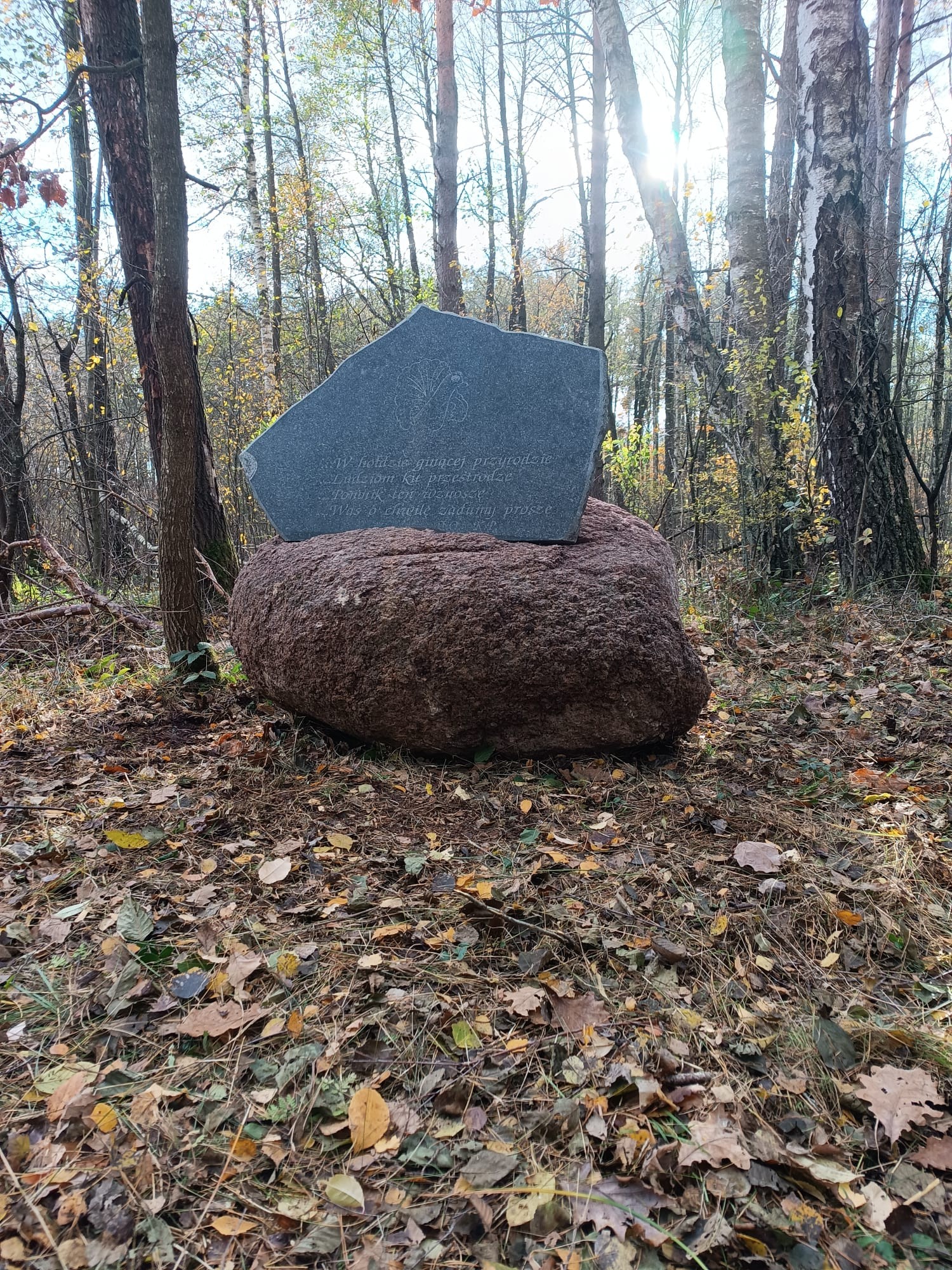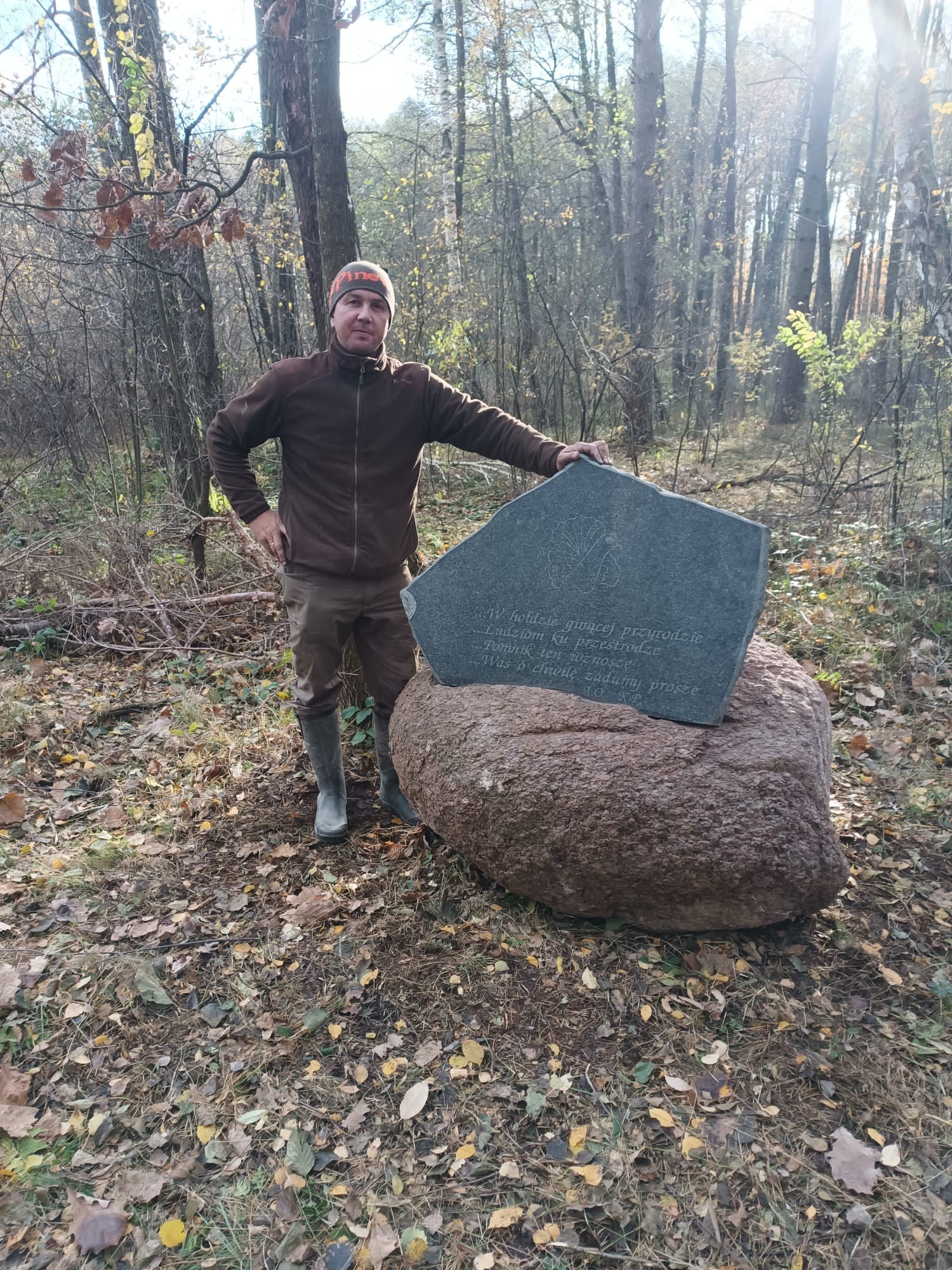Pomnik wykonany wiele lat temu usytuowany w łowisku KŁ nr 50 Cietrzew w Dubecznie w uroczysku Baranie bagno w nowej odsłonie na wielkim głazie. Darzbór!